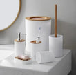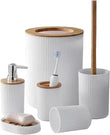 - COMPREHENSIVE SET: The 6-piece bathroom accessory set includes toilet brush, soap dispenser, toothbrush holder, tumbler, soap dish and wastebasket.