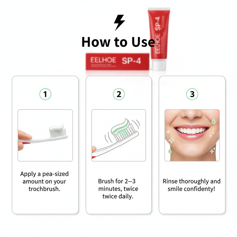 Transform your smile with EELHOE SP-4 Whitening Toothpaste, the advanced probiotic formula that removes yellow stains, strengthens enamel, and delivers visible whitening results in just 4 weeks.